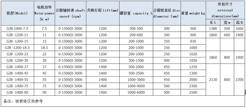 l  分散盤型式:平盤鋸齒式、三義槳式、碟式、其它形式;
